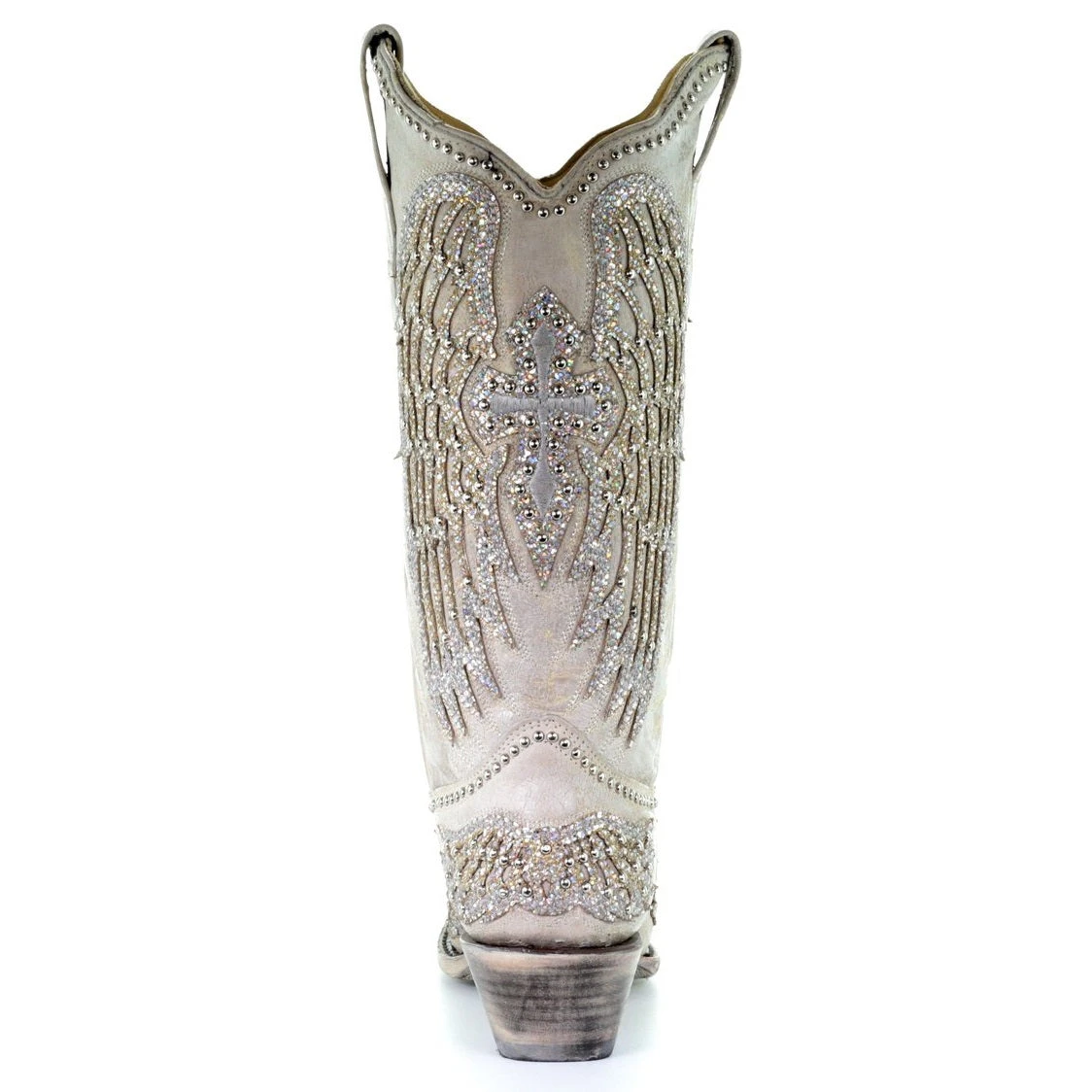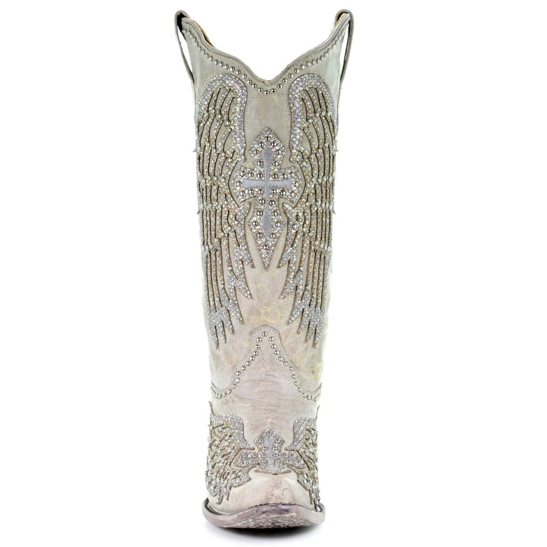 Corral Boots Corral Ladies Angela White Glitter Wing & Cross Studded Boots A3571