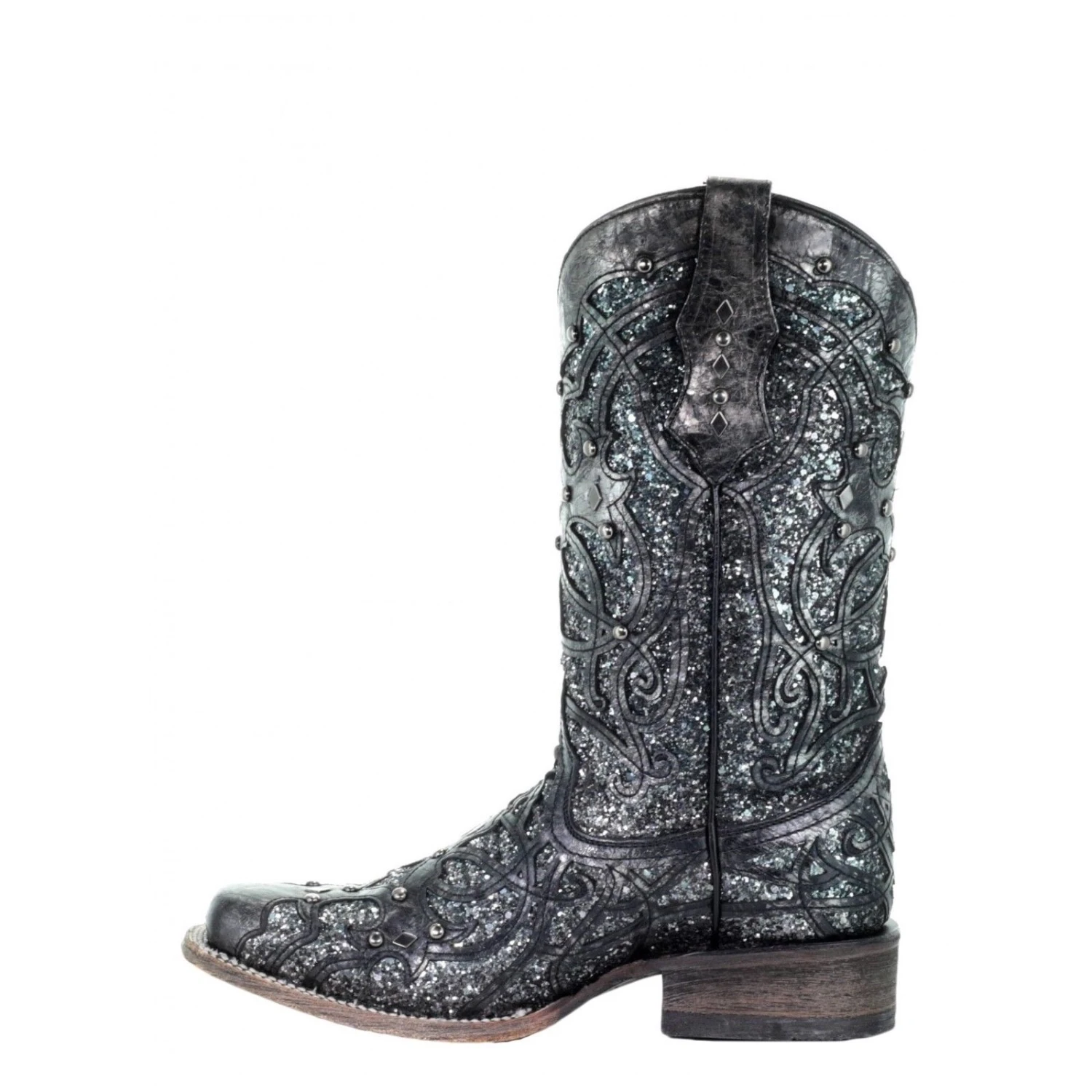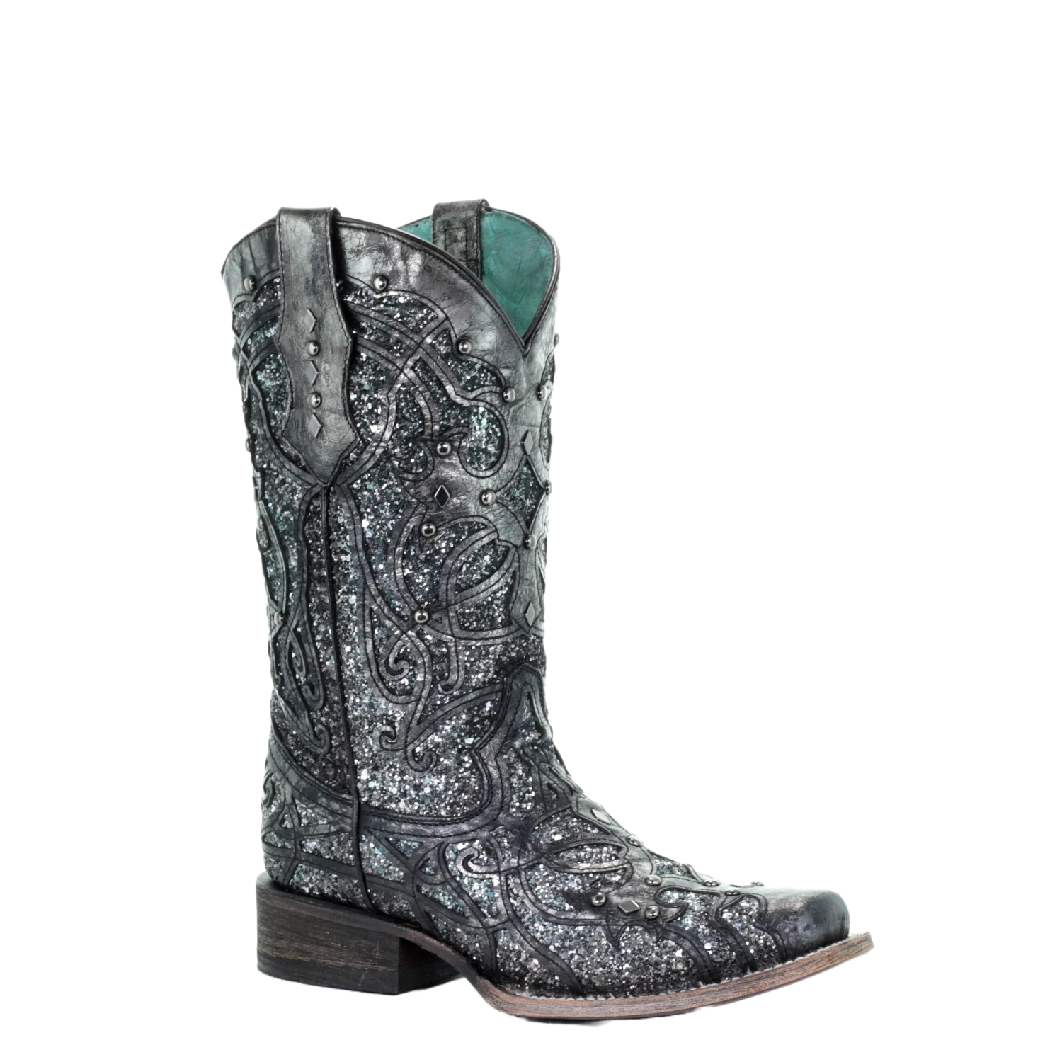 Corral Boots Corral Ladies Black Grey Glitter Inlay & Studs Square Toe Boots C3404