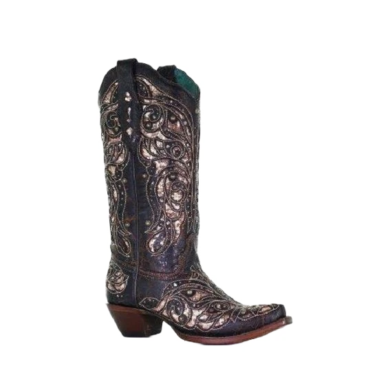 Be the first to review “Corral Boots Corral Ladies Embroidery & Stud Black & Honey Inlay Boots A4124” Cancel reply