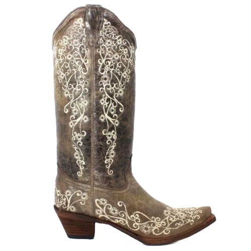 Corral Boots Corral Ladies Lisa Snip Distressed Brown Bone Embroidery Boots A1094