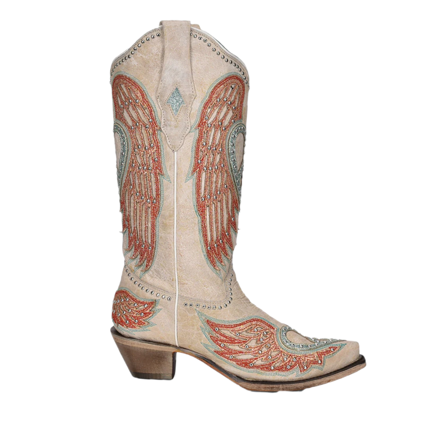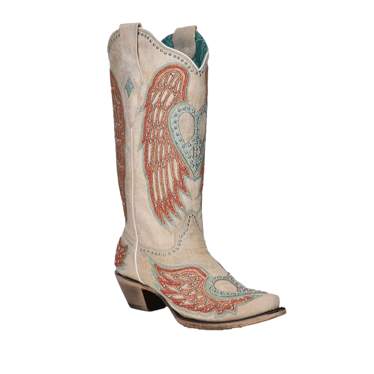 Corral Boots Corral Ladies Studded Bone Heart & Wings Overlay Western Boots A4236