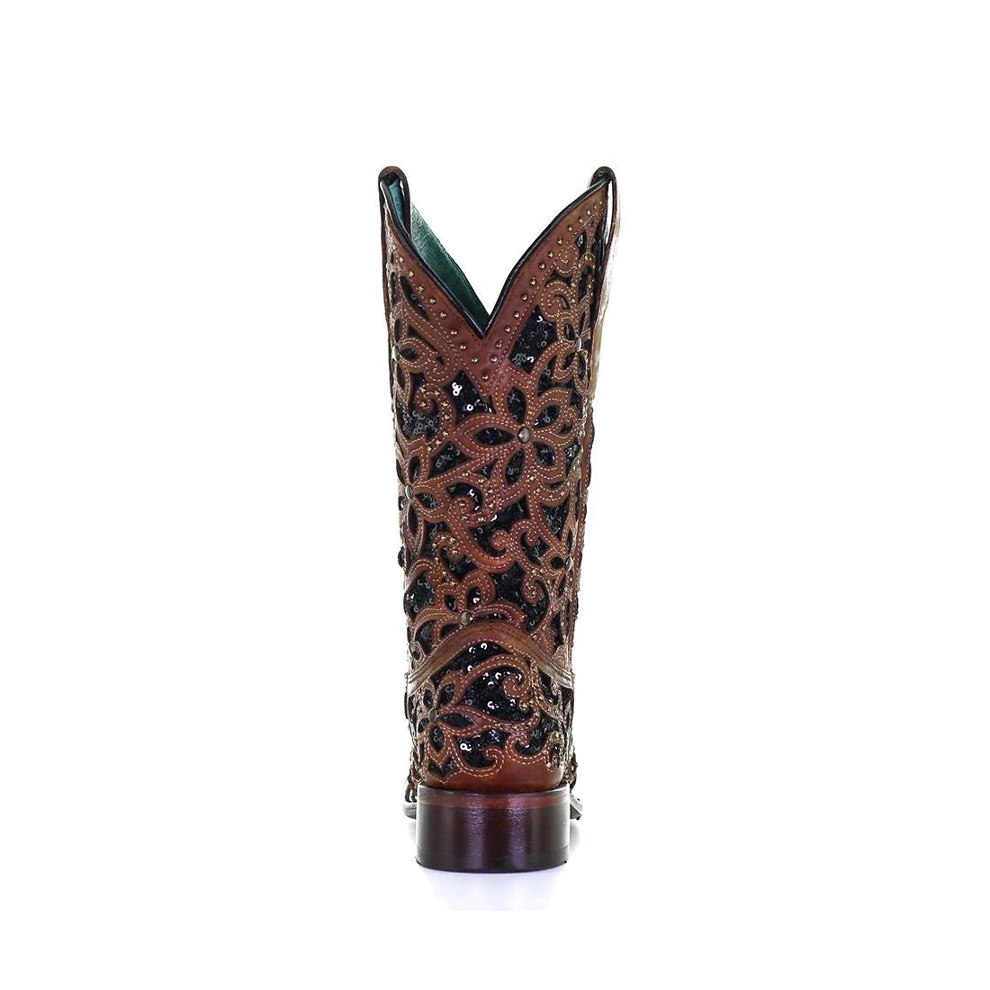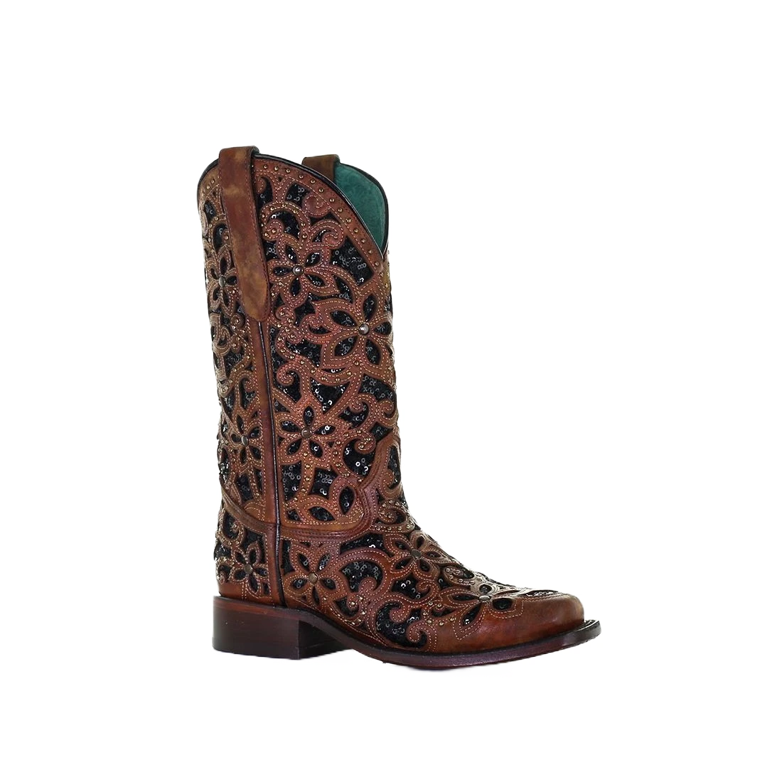 Corral Boots Corral Ladies Tan & Black Inlay Embroidery & Stud Boots A4129