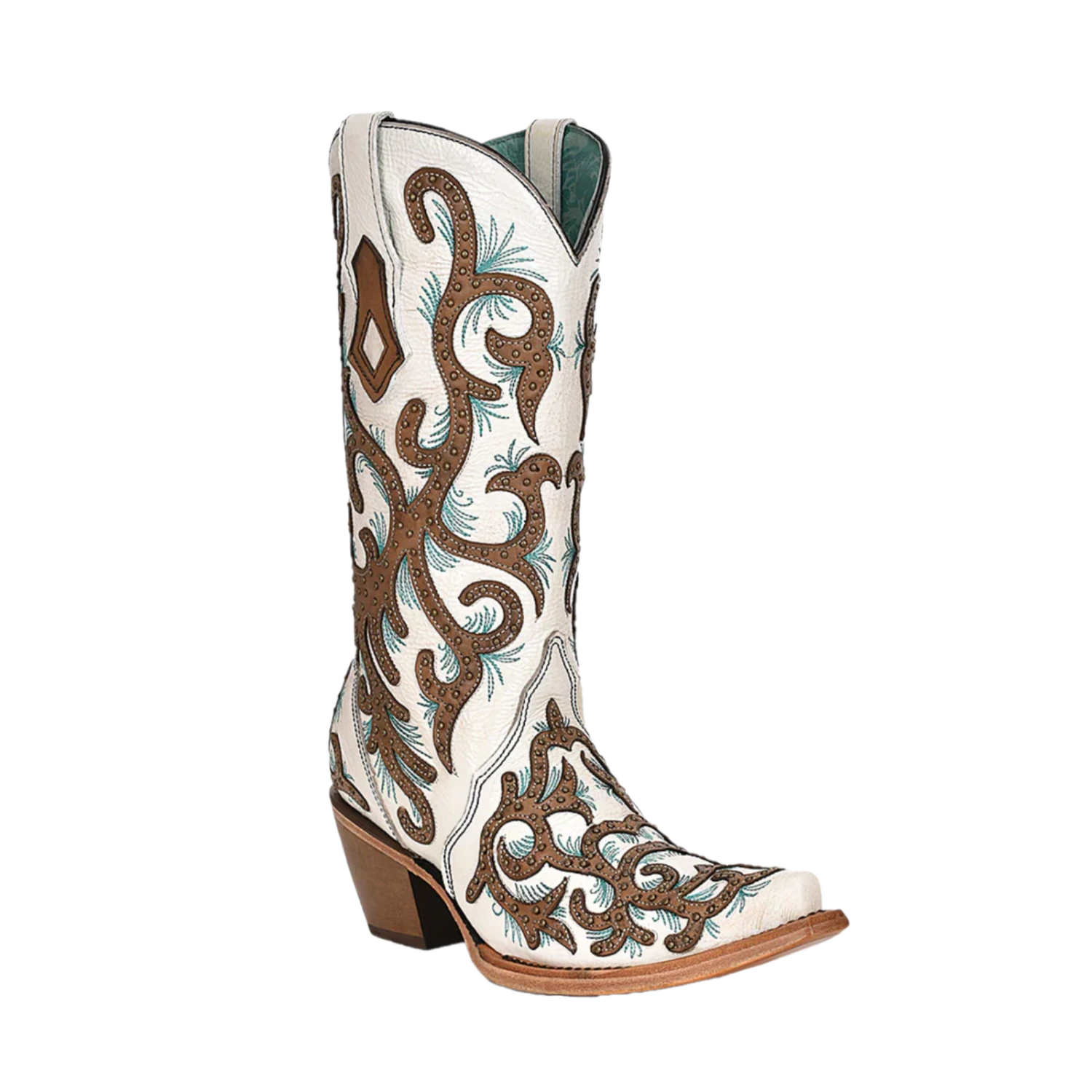 Corral Boots Corral® Ladies White Overlay & Studded Inlay Snip Toe Boots C3981