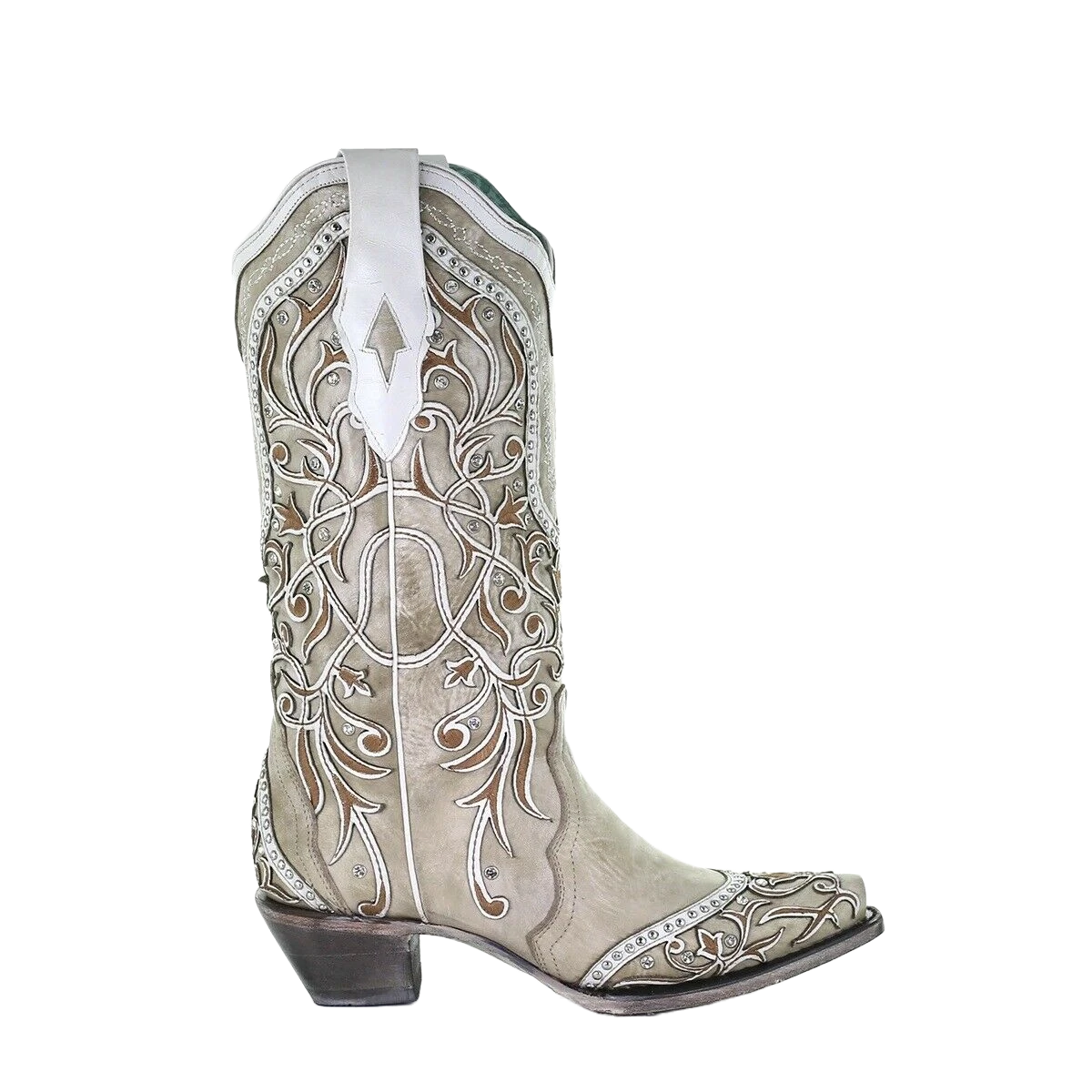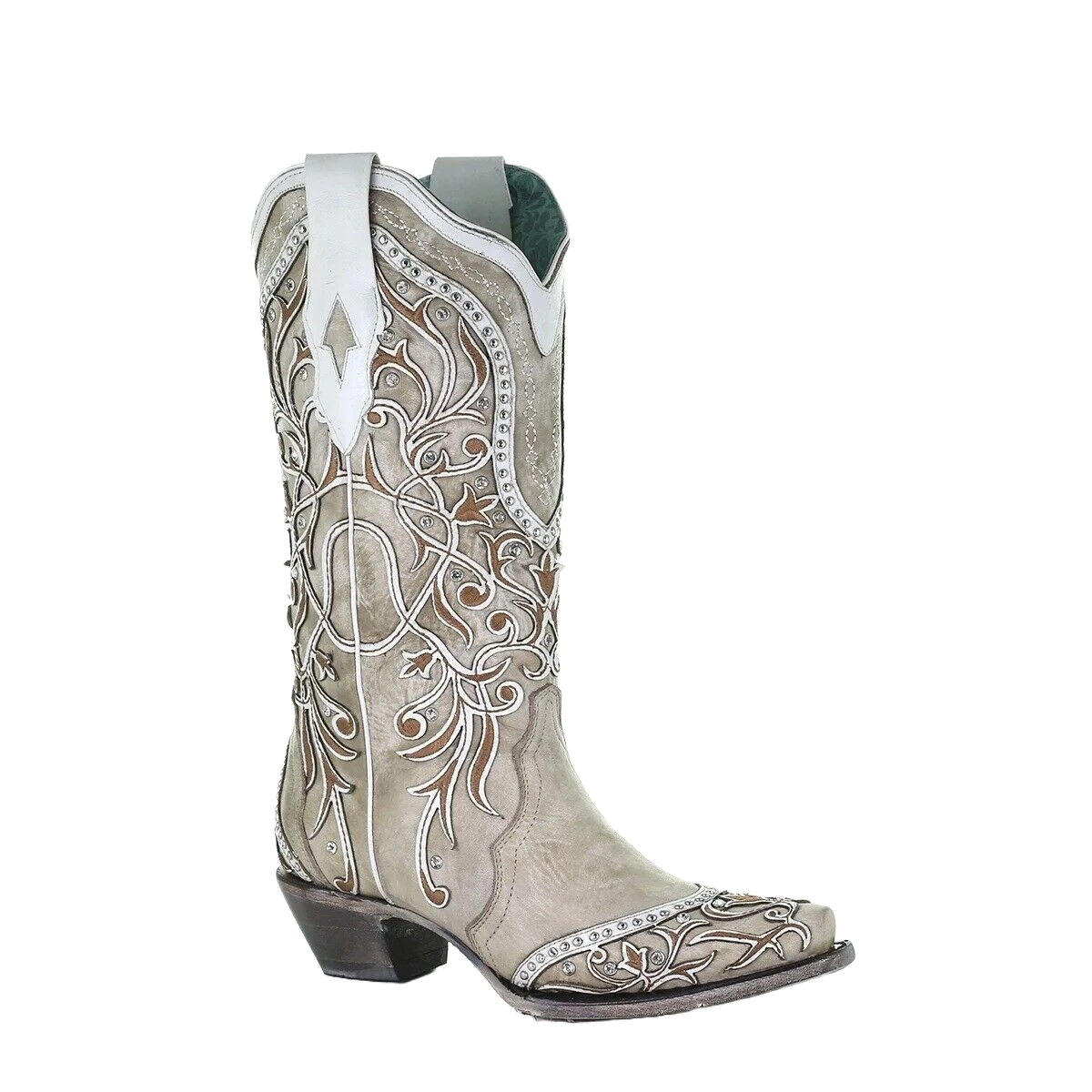 Corral Boots Corral Ladies White Overlay With Studs & Crystals Leather Boots A3837