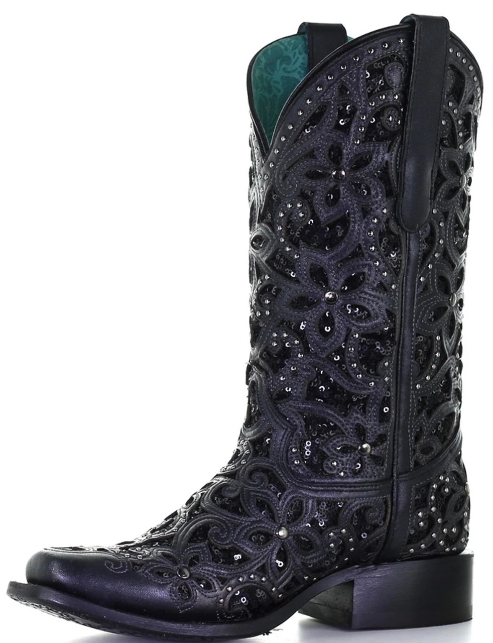Corral Boots Ladies Corral Black Inlay & Embr. & Studs SQ Toe – A4128