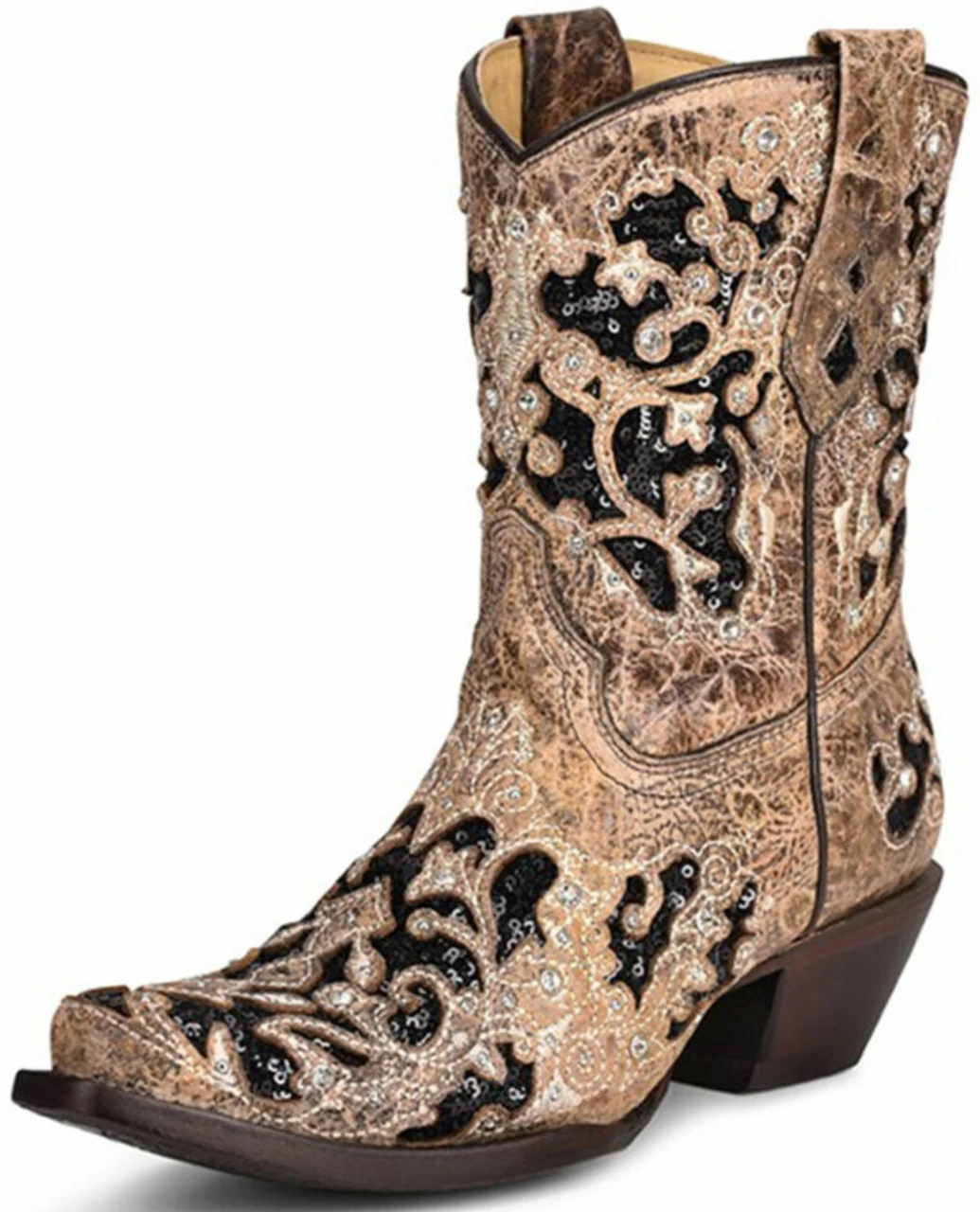 Corral Boots Lds Brown Inlay & Embr. & Studs & Crystals Ankle Boot – A4190