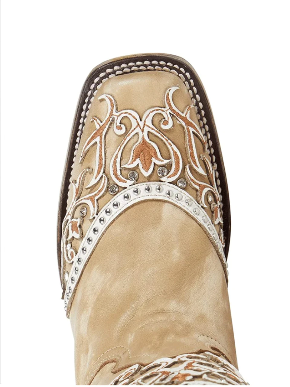 Corral Boots Lds White Overlay & Embr. & Studs SQ Toe – A4165