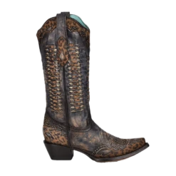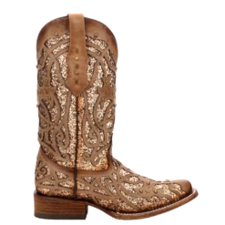 Corral Boots Corral Ladies Iridescent Brown & Tan Inlay Studded Embroidered J Toe Boot A4271