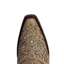 Corral Boots Corral Ladies Embroidery & Stud Round Toe Beige Ankle Boot C3728
