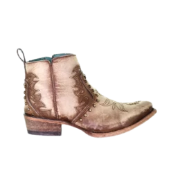Corral Boots Corral Ladies Embroidery & Stud Round Toe Beige Ankle Boot C3728