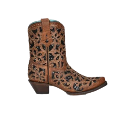 Corral Boots Corral Ladies Bird Overlay And Studded Brown J Toe Bootie Z2006